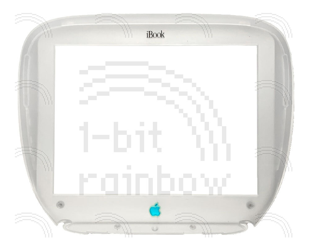 Original Apple Blueberry display bezel and bezel shield for the original models of iBook G3 Clamshell. This A-grade item will have either no cracks or a very tiny crack around the Apple logo.