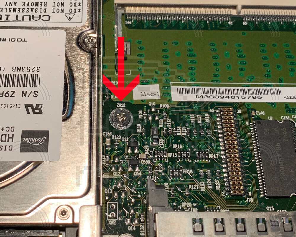 2 secure the RAM shield 1 at rear of modem shield 1 secured the left side of modem board 1 secures the front left side of the heat sink 1 secures the logic board at position ZH12 (right of HD) 4 secure the bottom of the display chassis to the hinges.