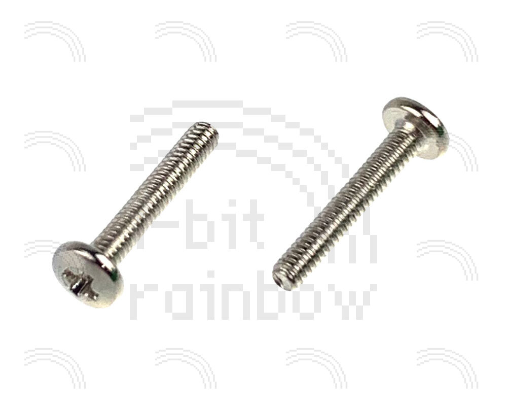2 x original Apple, dome headed Philips 13mm AirPort socket screws for the FireWire and FireWire SE iBook G3 Clamshell models. Two of these secure the AiPort card socket to the logic board.