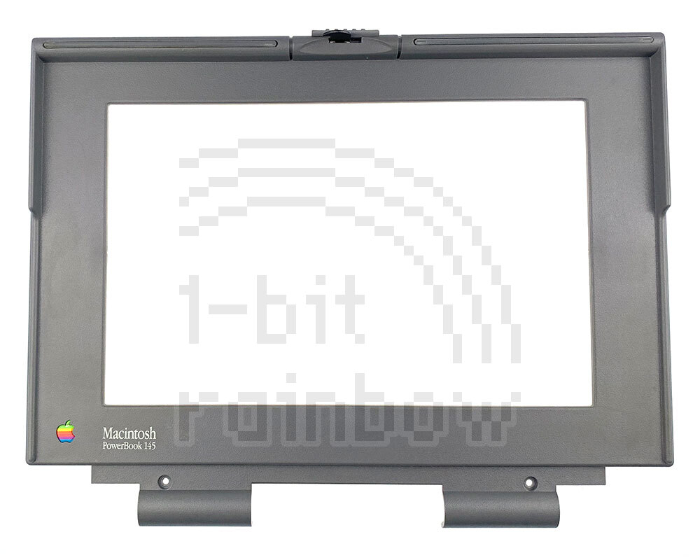 Original Apple PowerBook Display Bezel for the PowerBook 145 including lid catch mechanism. This bezel will physically fit any of the PowerBook 140, 145, 145B and 170 models but the silk screened legend on the front ready PowerBook 145.