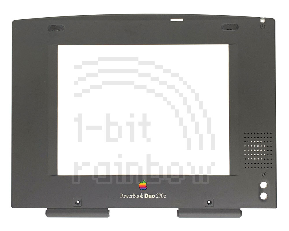 Original Apple display bezel for the PowerBook Duo 270c. This is physically interchangeable with the 280c but this has the model silk screened on whereas the 280v bezel has no legend.