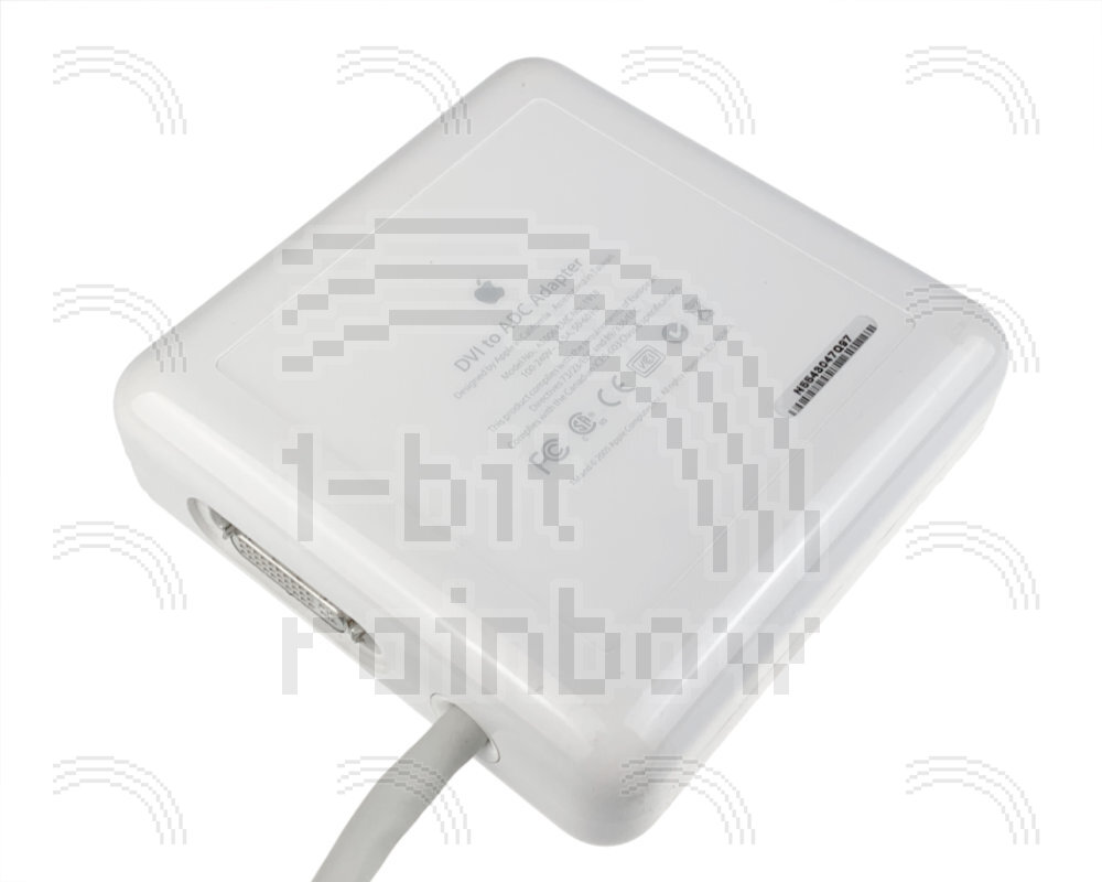 Used, fully tested Apple original DVI to ADC monitor adapter which allows Apple monitors featuring their proprietary ADC connector to be connected to any computer with a standard DVI port. The adapter is mains powered and also connects to the host computer's USB port. The image signal, power and USB are then all passed to the monitor via the ADC connector.
