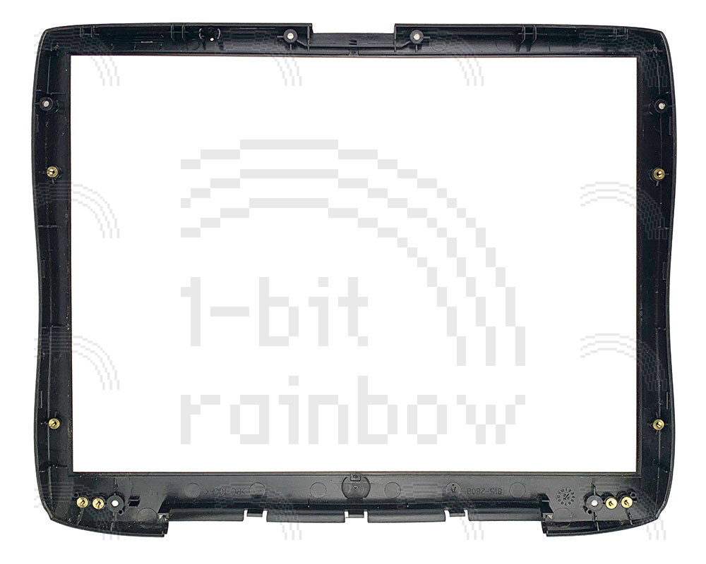 Display bezel and lid catch for the 14.1" display models of Wallstreet and PDQ PowerBook G3. Clutches and lid latch sold separately. To fit the display latch to the display, insert the the longer lug first then gently flex the bezel to slide the shorter lug (spring end) in place. To remove, follow in reverse.