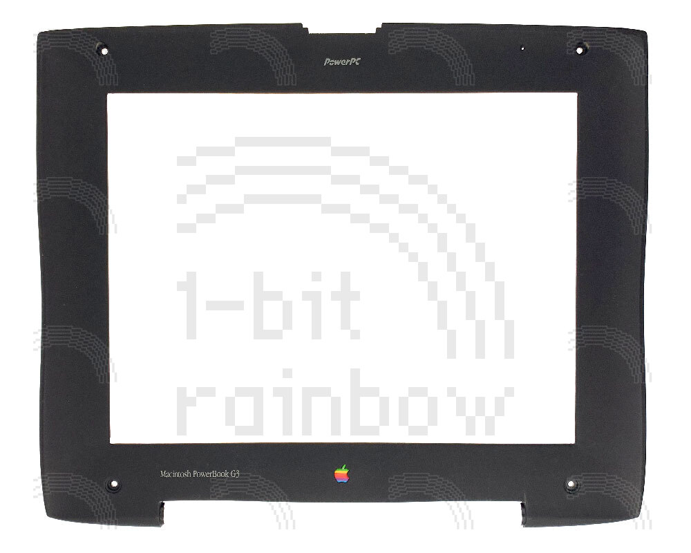 Display bezel for the 12.1" display models of Wallstreet PowerBook G3. On this model, the lid catch is a separate part.