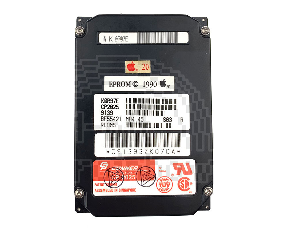Fully tested Apple branded Conner 20MB 2.5-inch, 17mm high SCSI hard drive. Pre-formatted as HFS and loaded with Macintosh system 7.1 for PowerBook 100 series.