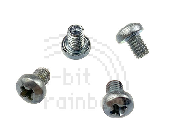 Set of 4 original Apple silver cross head 5.8mm mounting screws for the PowerBook series. These secure the hard drive to the hard drive bracket.