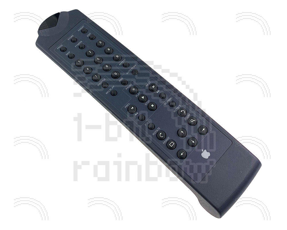 Original Apple remote control for the PowerCD. This is the blue version although it is functionally interchangeable with the grey version.